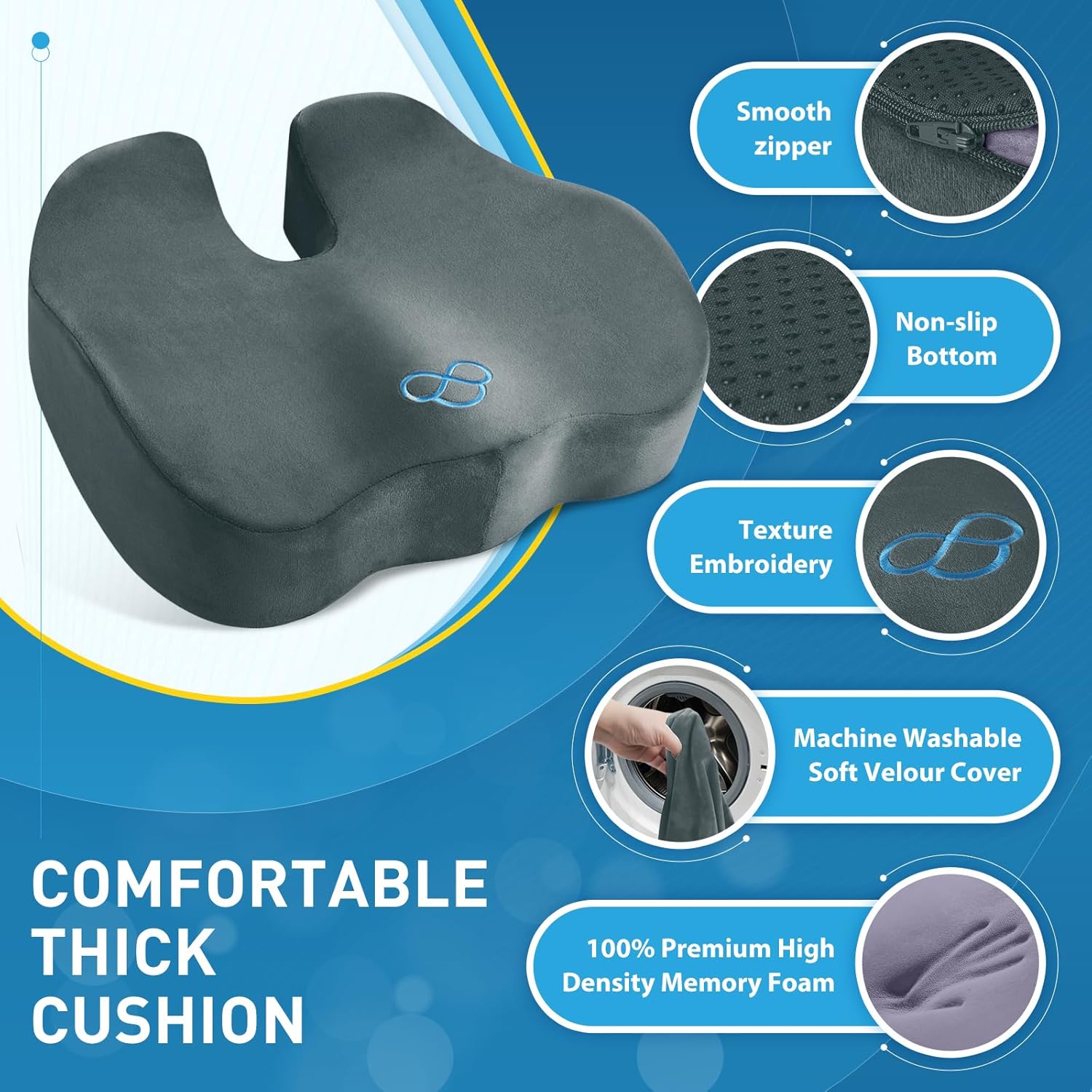 BlissTrends Seat Cushion,5.2in Thick Memory Foam Cushions for Office Chair, Car Seat, Airplane, Relieving Pressure Tailbone Sciatica Back Pain for Long Sitting Office Workers, Car Drivers DarkGreen
