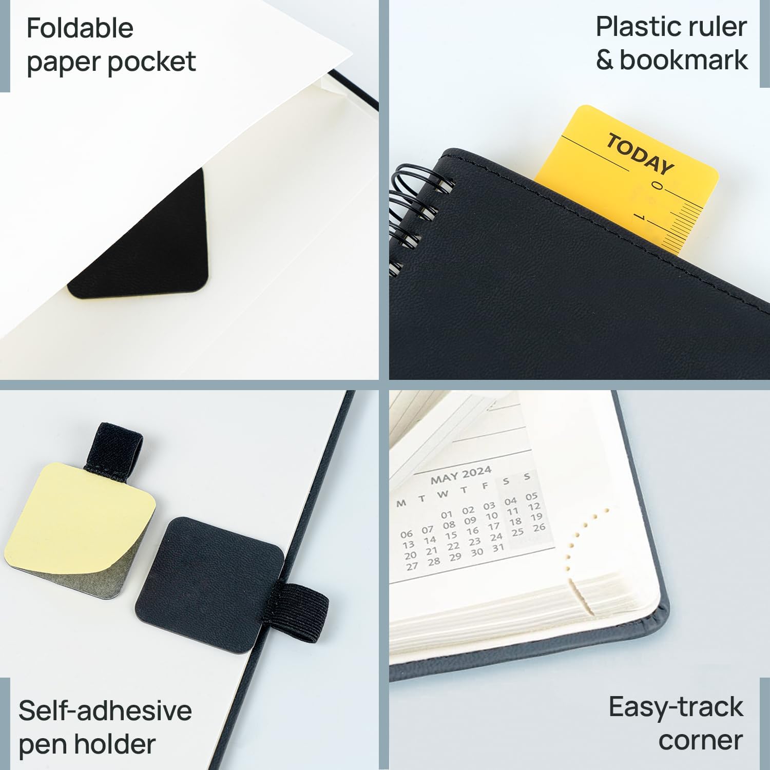 - QUICK SEARCH FUNCTION: Flexible " TODAY " Ruler and Monthly tabs allow you to quickly browse and locate the current date. Besides; The Tear-Off Corners and Bookmark Ribbons are added to mark any wanted page of your choice.