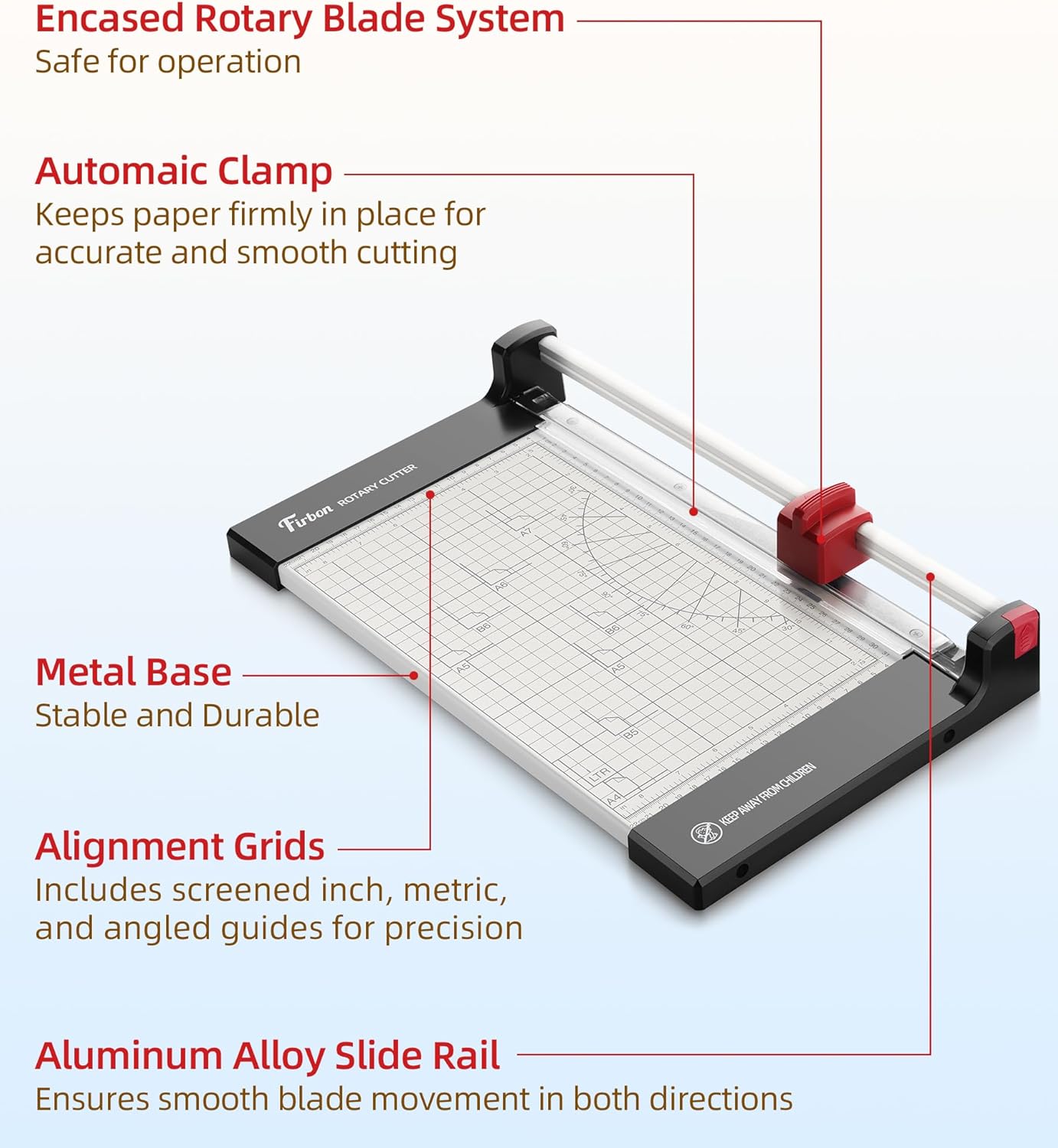 Firbon 12" Rotary Paper Trimmer with Replaceable Blade, Heavy Duty 12-Sheet Capacity Cutter for Cardstock, Photos, Scrapbooking, Office, School & Studio