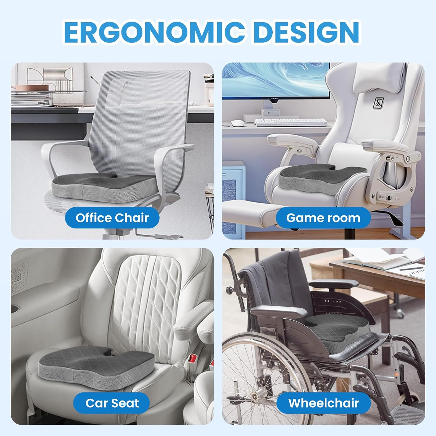 - 【Premium Memory Foam】Our office chair seat cushion is made of 100% pure memory foam, soft and firm, uses your own body heat to adapt to your curves, ergonomic "U" shaped hollow design for superior comfort, effectively support the coccyx, relieve the hip pressure caused by sitting for long periods