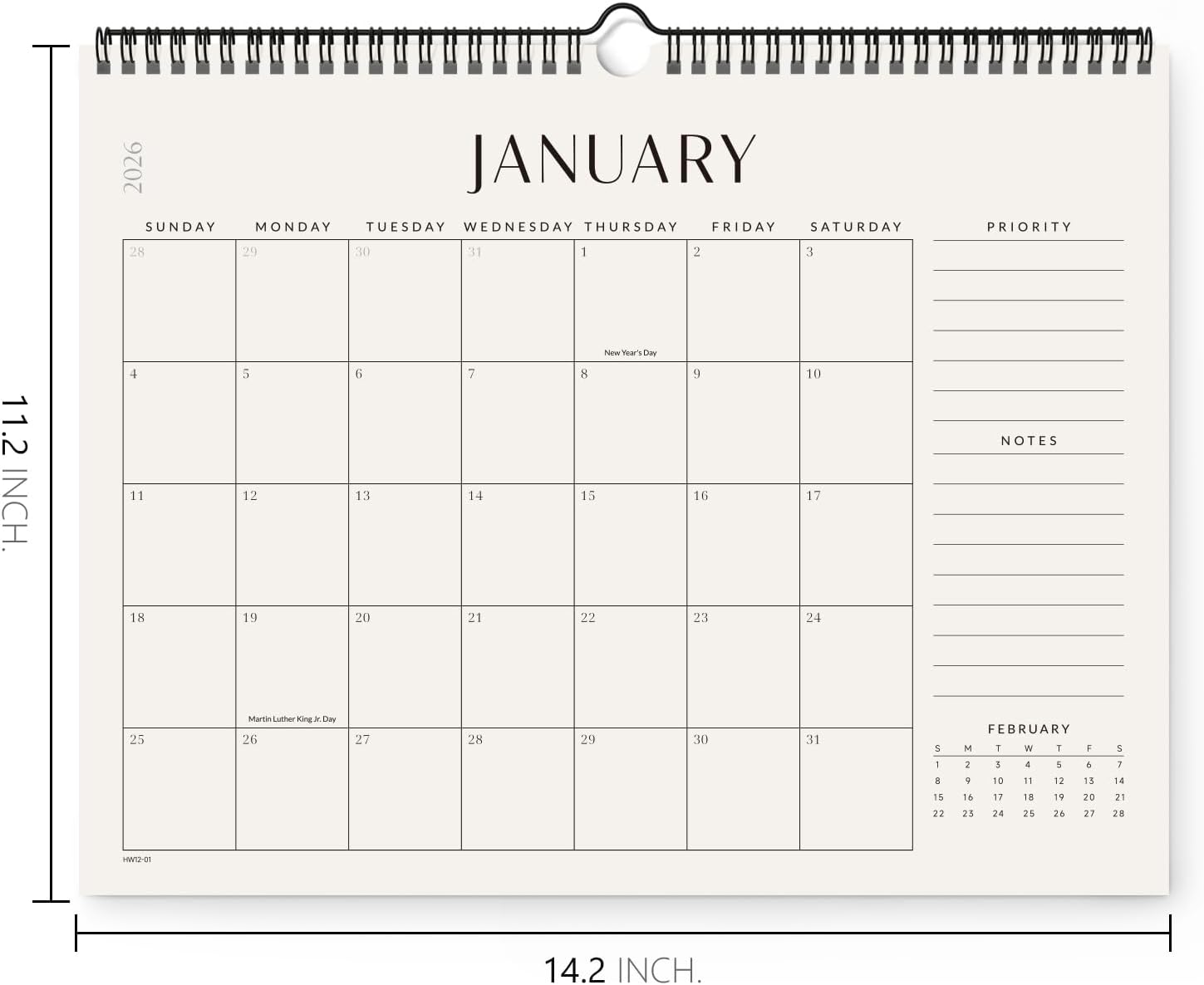 - ENHANCE YOUR EFFICIENCY: This wall calendar 2025-2026 (14.2" x 11.2") is the ideal size to hang on your wall. It's a useful tool for seeing all of holidays, birthdays, appointments, deadlines, and staying on top of your important arrangements