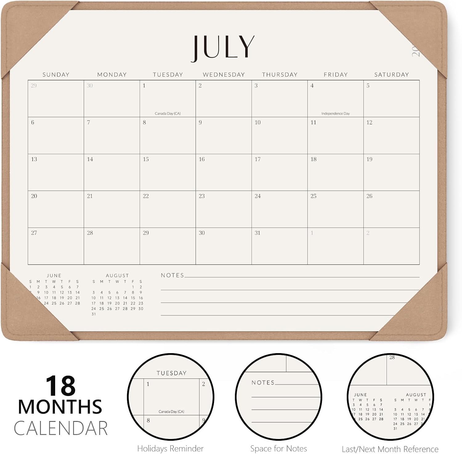• DESK PROTECTING PAD & PREMIUM PAPER: This desk calendar includes a protective mat to shield your desktop from stains and scratches while keeping your calendar clean and tidy. Printed on thick, premium paper to avoid ink through, this desk calendar july 2025-2026 provides a smooth writing surface