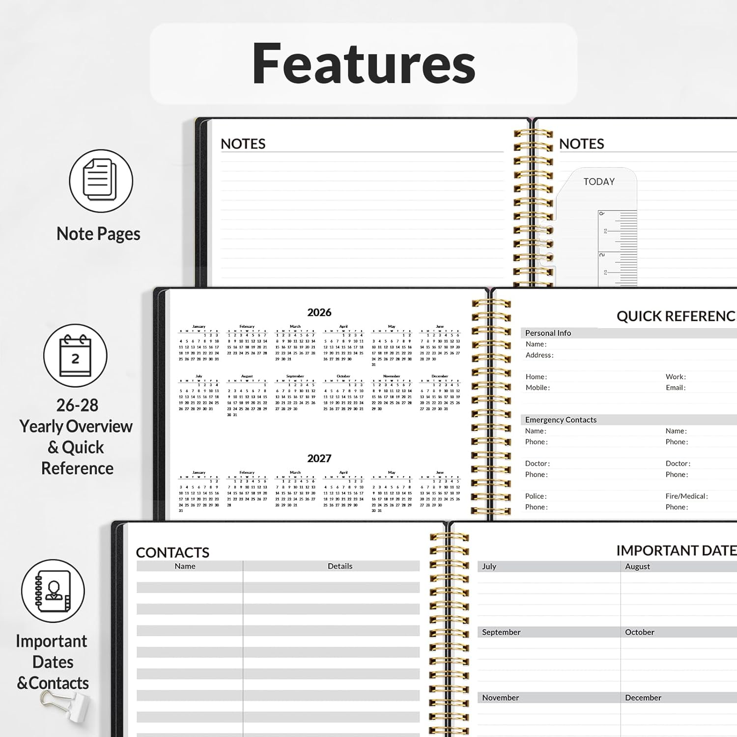 • Additional Features - The weekly planner includes 2026-2028 calendars, year schedule for full year 2026, holiday lists, contact pages, notes pages, important dates, and US time zone map. Rainbow monthly tabs simplify navigation and add a stylish, playful element to the planner's aesthetic.