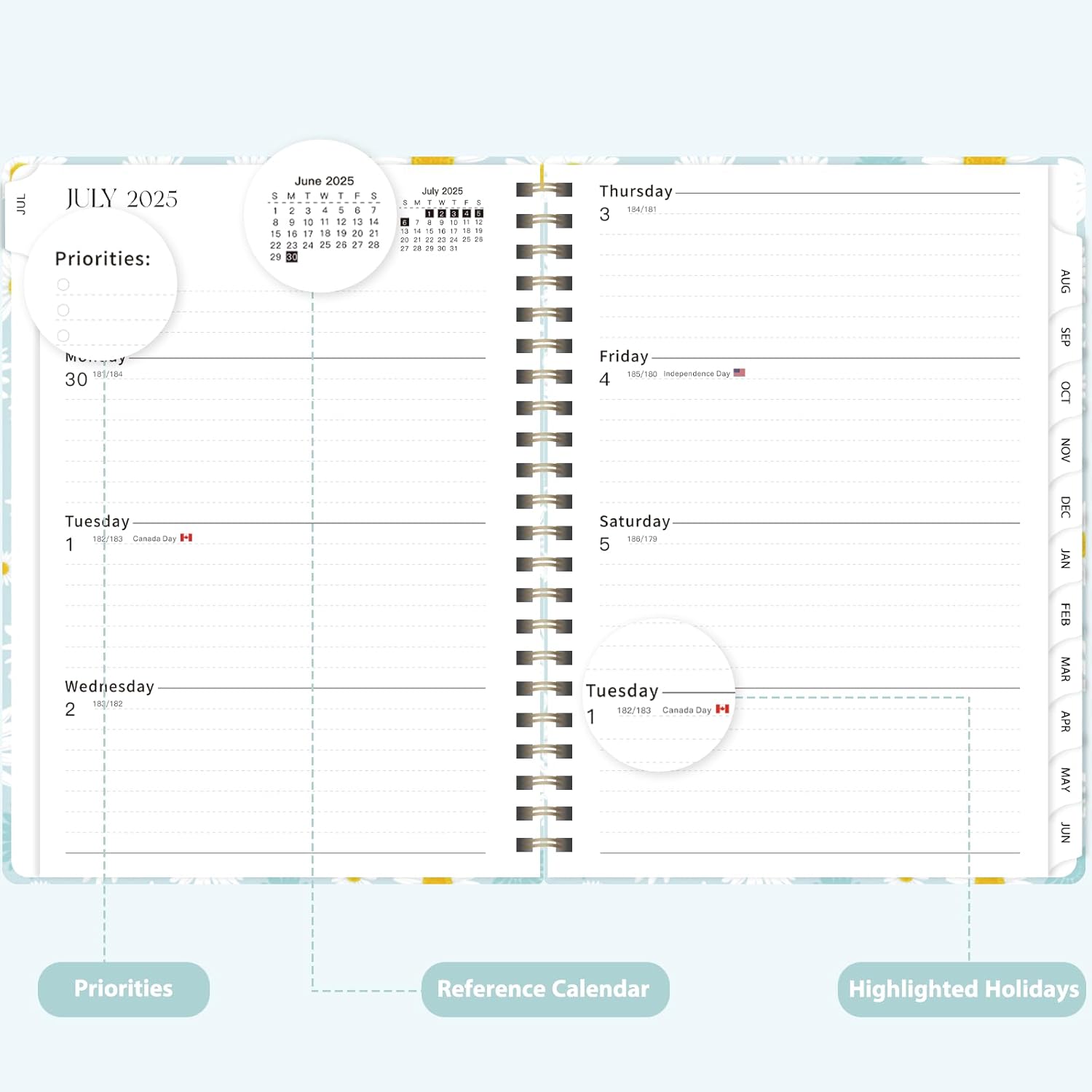 Planner 2025-2026 for Women & Men, Weekly and Monthly Calendar Notebook (July 2025 - June 2026), Hardcover Spiral Bound School Teacher Student Planner with Tabs, Inner Pocket, A5 (6.3" x 8.5")