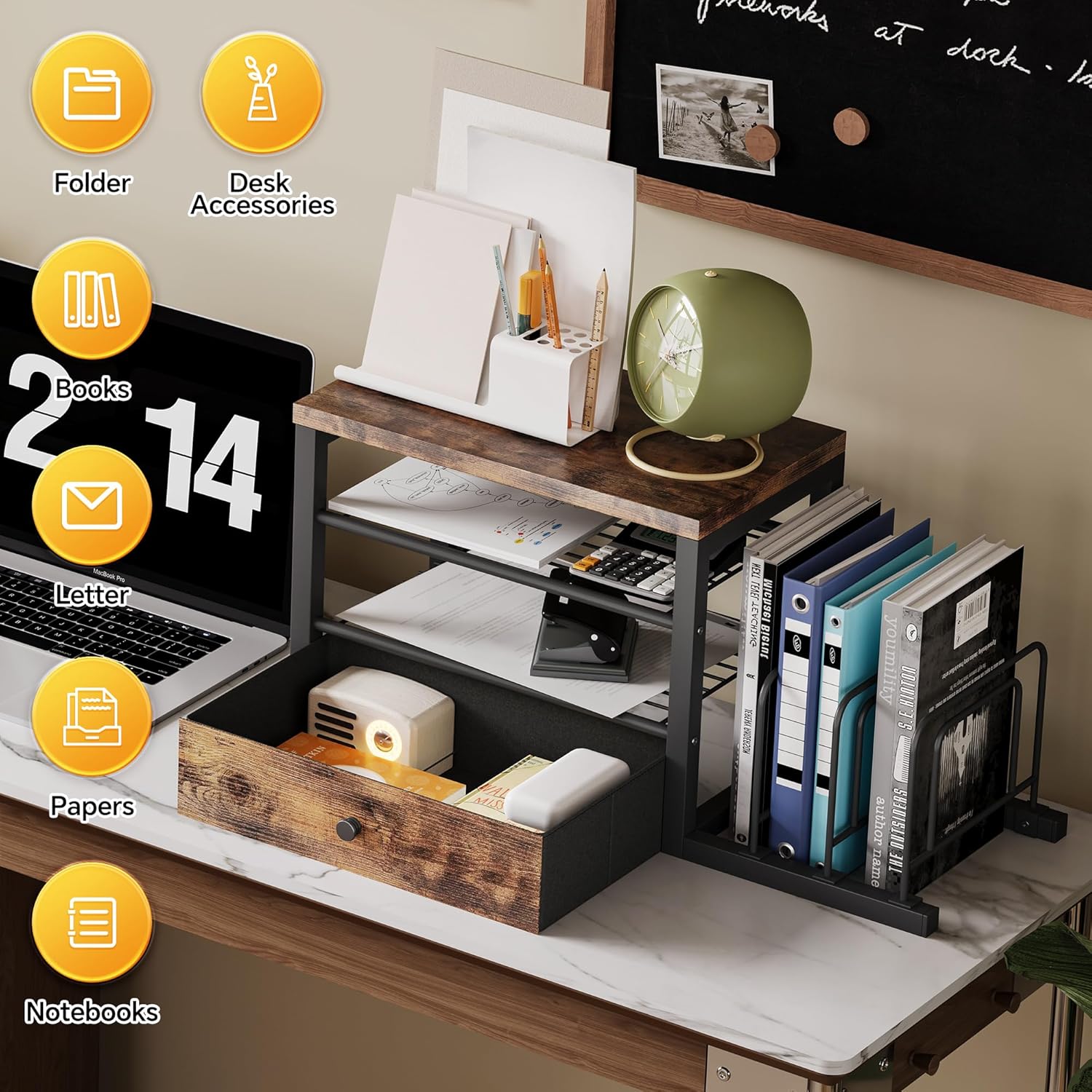 Wood Desk Organizer with Drawers, Desk File Organizer with 3 Vertical File Holders, File Shelf,Storage for Mail, Supplies,Classroom Organization