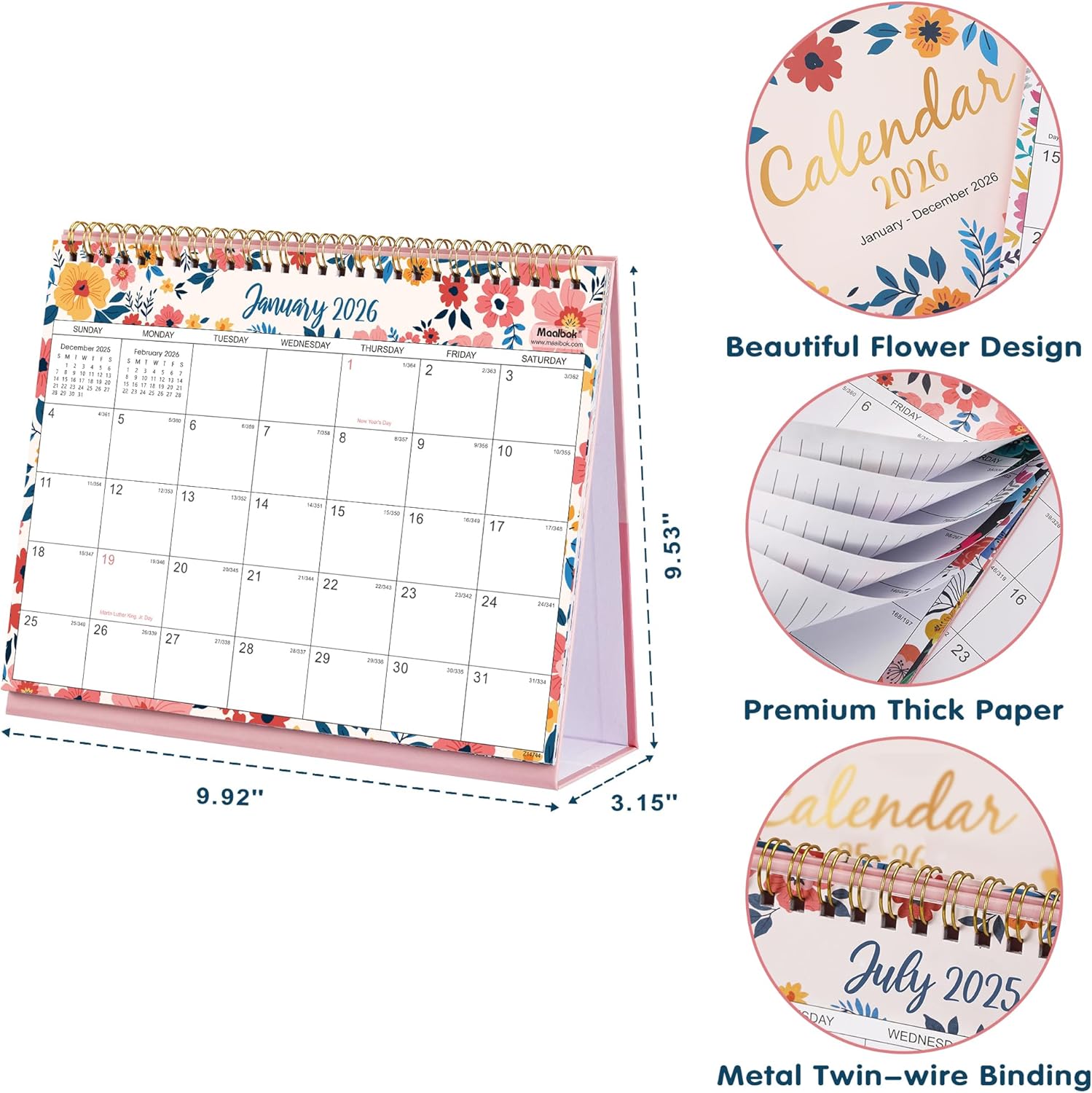 - š¼ PREMIUM PAPER - This desktop calendar 2026 uses premium and thick paper, can well avoid seepage and ink feathering, and give you a better writing experience. More, the metal strong Twin-Wire Binding can help you to flip this stand up calendar easily.