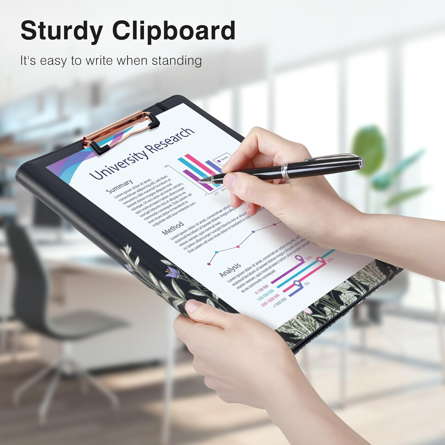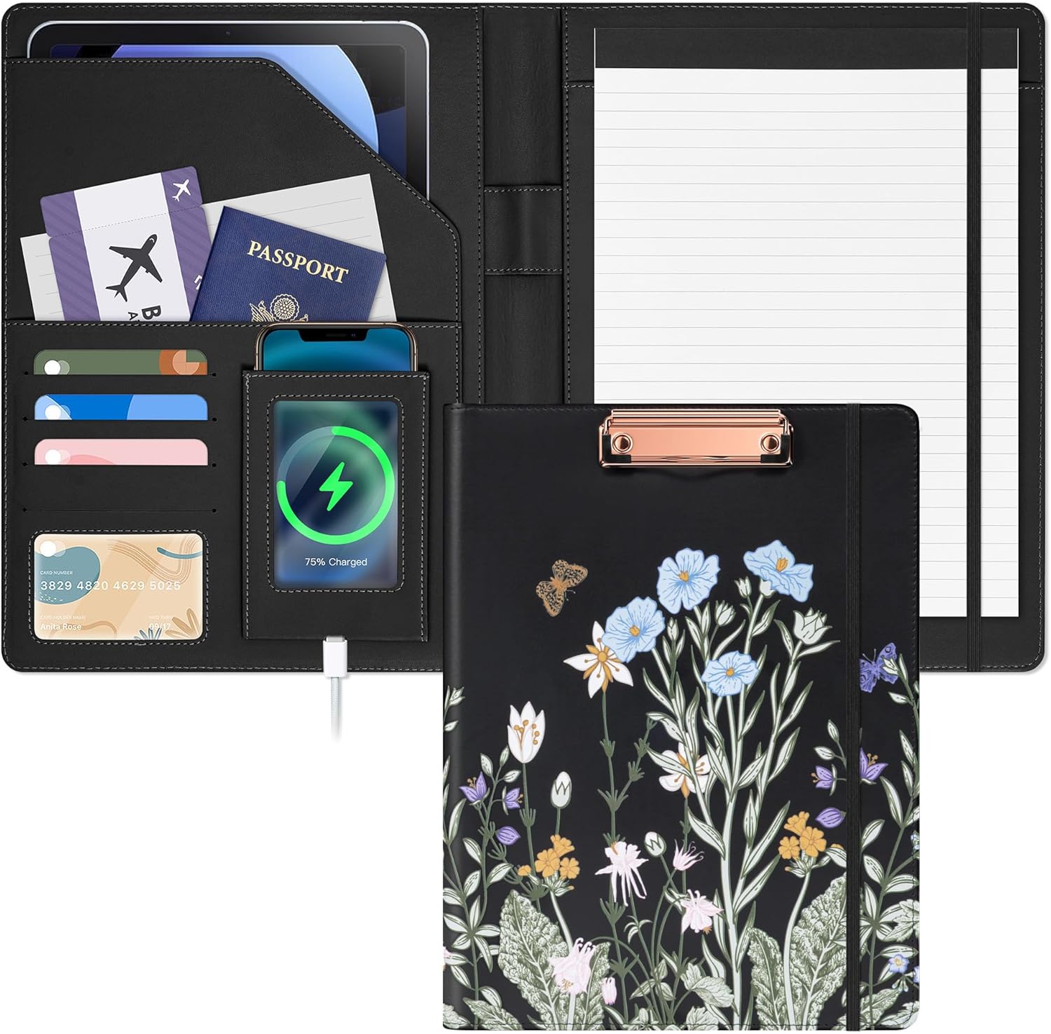Ospelelf Foldable Leather Clipboard Padfolio with Notepad 8.5 x 11, Business Clipboard Portfolio Organizer, Flowers