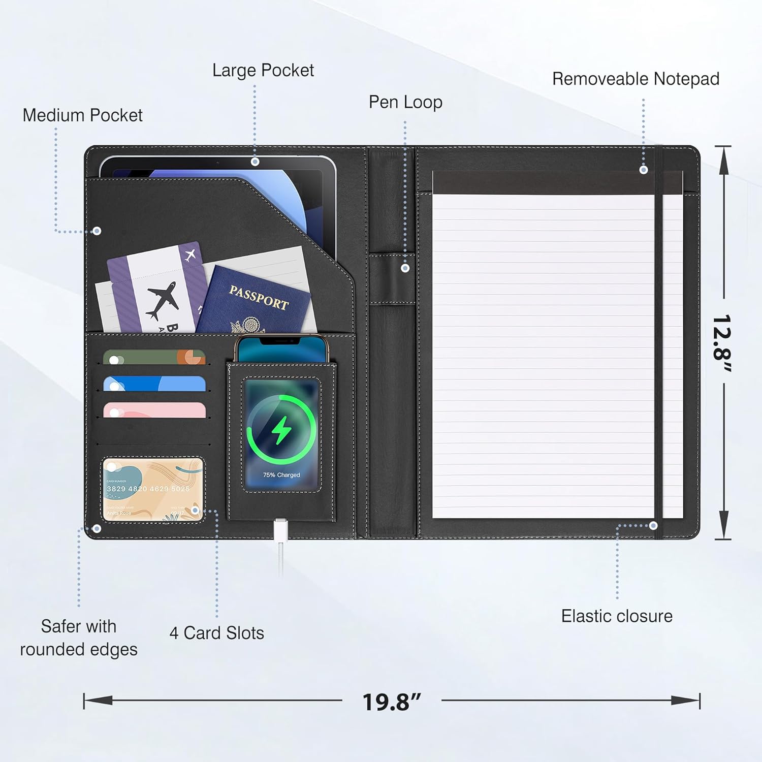 - 【Standard Size】 The Clipboard Padfolio measures 12.8" x 9.8" x 1.18" and fits letter-size paper (8.5" x 11") sheets. It is compatible with most common sheet protectors. Plus, the removable notepad (8.5" x 11") offers ultimate convenience.