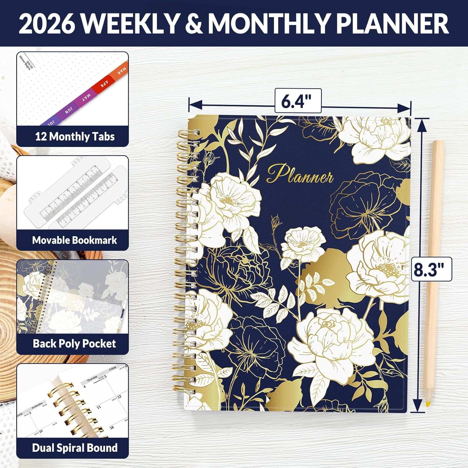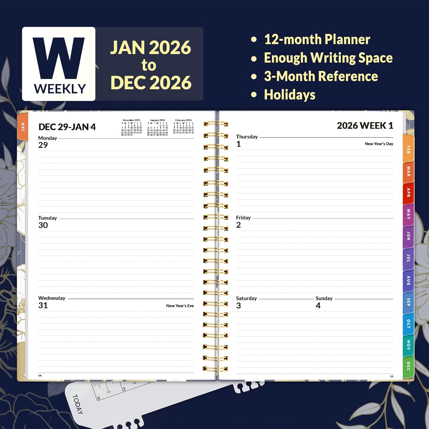 • 2026 Professional Planner - Cover from January 2026 to December 2026, Features 12 months of monthly and weekly pages, and also inclueds 3 extra monthly pages for October to December 2025 and 12-monthly tabs, with Lay-flat capability for all your planning and scheduling needs, and measures 6.4" x 8.3"