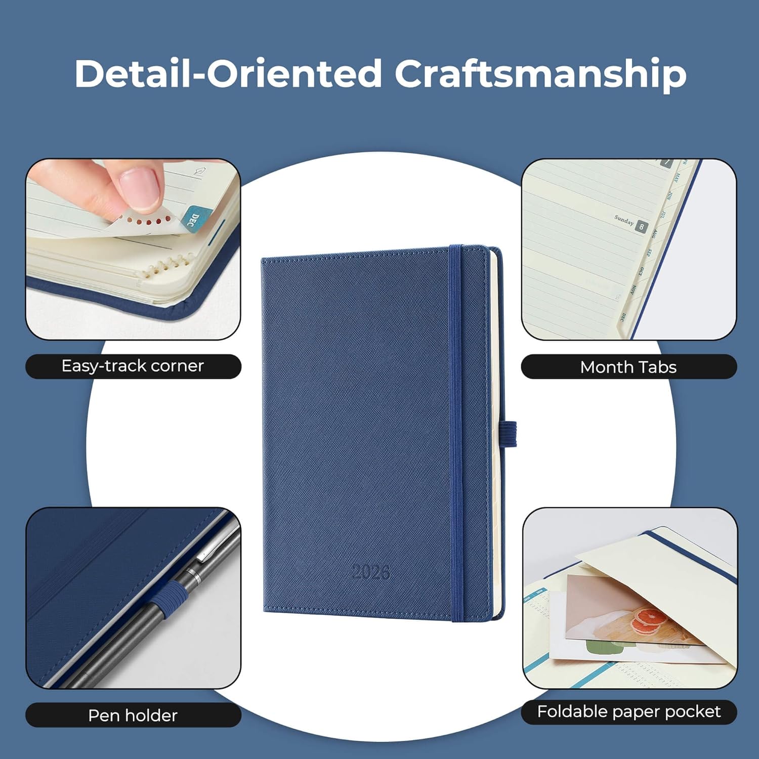 - Thoughtful Design: The monthly tabs on the side of the agendas planner can easy locate the current date; the tear off design and bookmark rope make it easy to flip through the medium planner. The last page of the 2026 college planner has an expanded inner pocket that has a small space for storage of cards