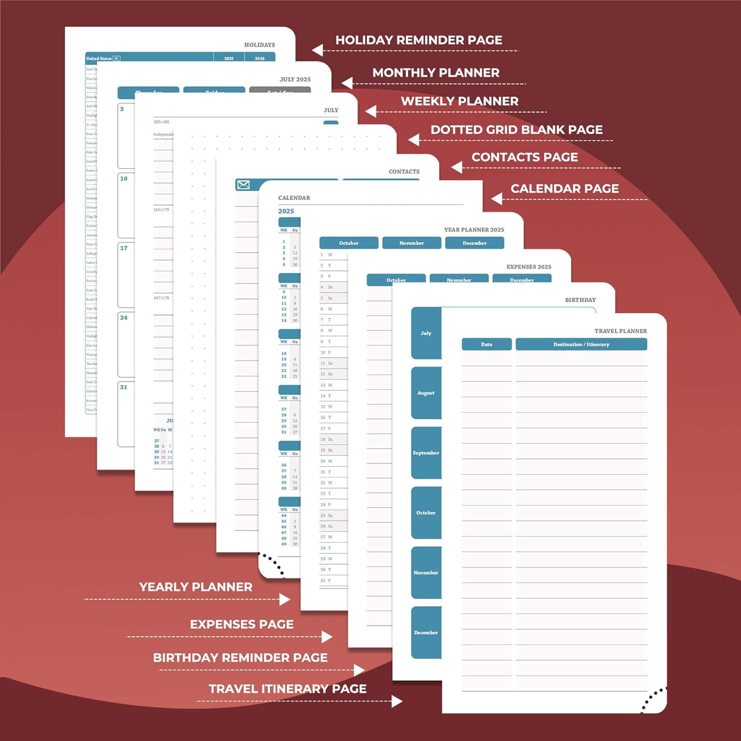 • Universal Design Planner: Suitable for a variety of people and scenarios. Professionals manage project progress, meeting arrangements and goals; student planner 2026 courses, exams and extracurricular activities; home users arrange travel, activitie