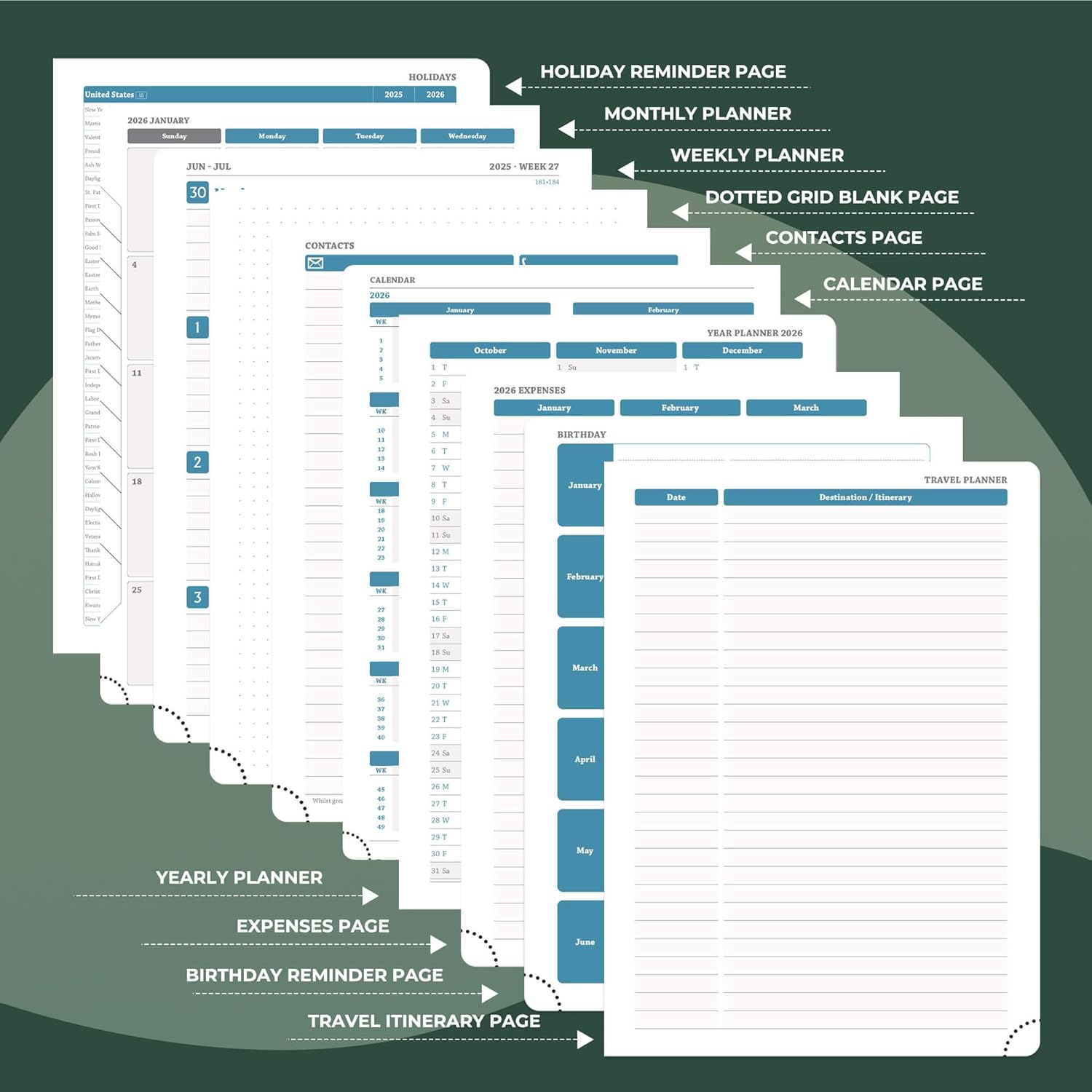 - Universal Design Planner: Suitable for a variety of people and scenarios. Professionals manage project progress, meeting arrangements and goals; student planner 2026 courses, exams and extracurricular activities; home users arrange travel, activitie