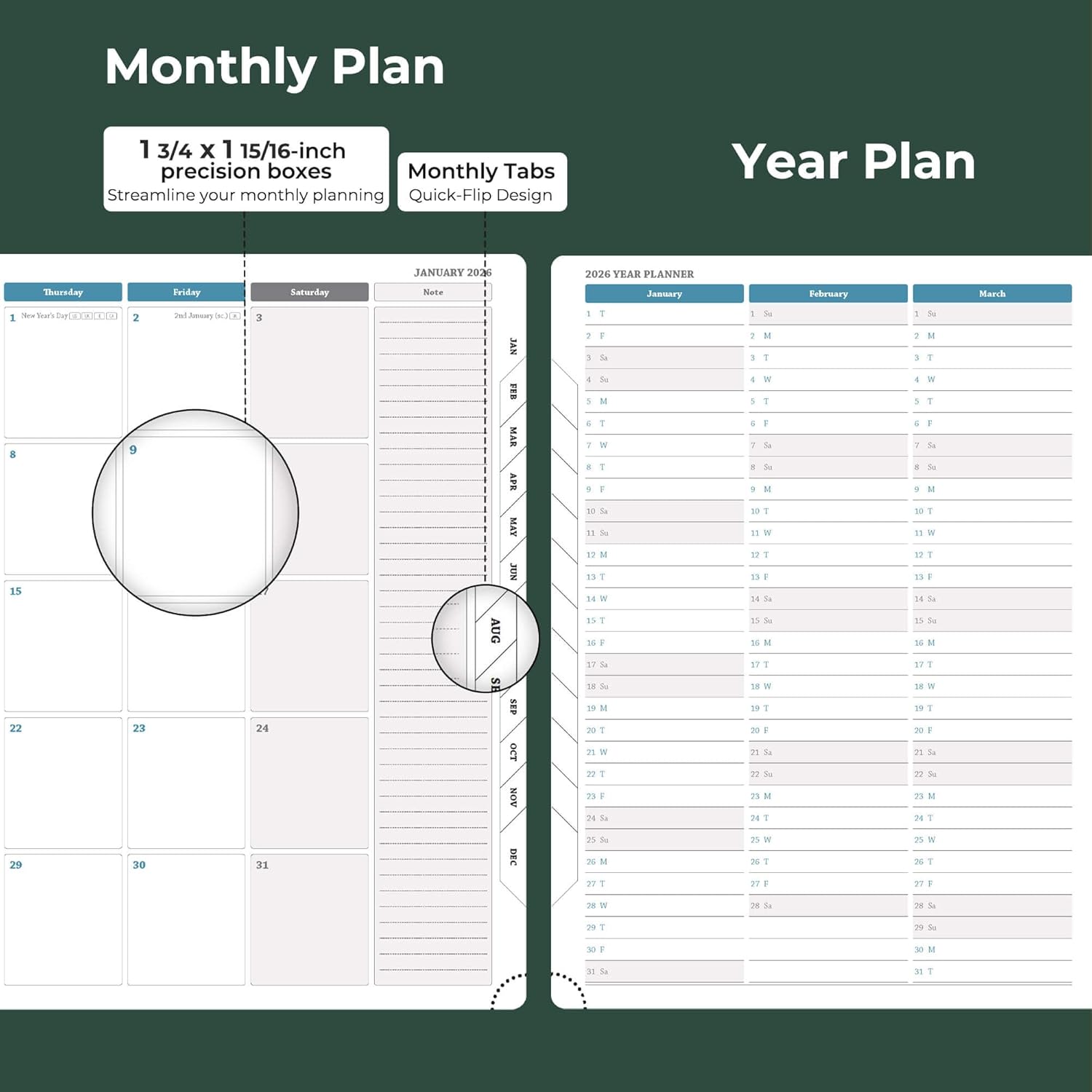 - Professional Grade Material for Your Daily Planner: Crafted with FSC 100GSM thick paper, this 2026 planner ensures good writing with markers while gentle on your eyes through its ivory white pages. The leather soft cover and lay flat binding make it a calendar planner companion for busy professionals, students, and families