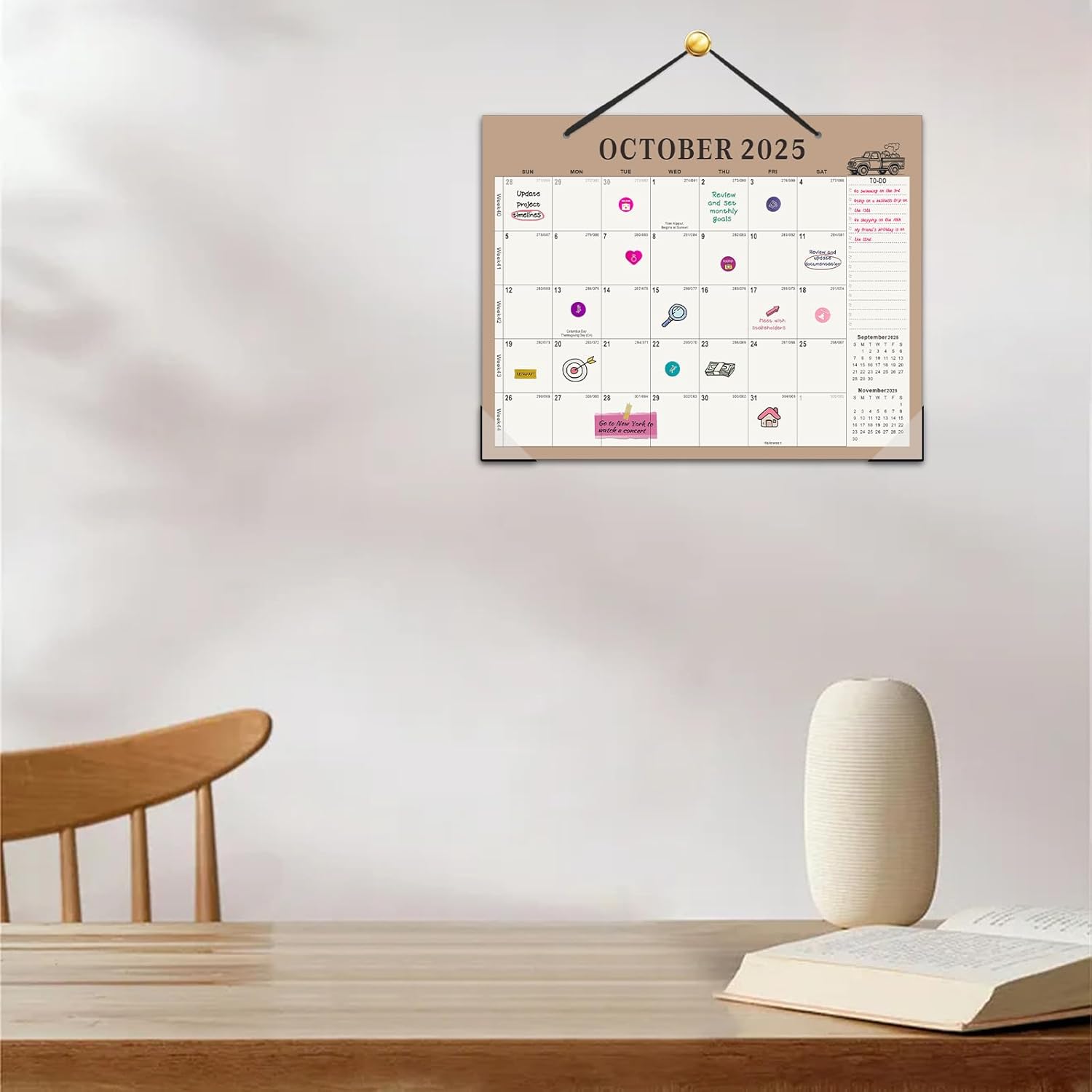 • 📔【For Wall/Fridge/Desk】Small calendar 2025-2026 comes with a magnetic strip, a hanging string and 3 stickers. It can be placed not only on the desktop, but also on the wall and refrigerator. Stickers help you plan your life better.
