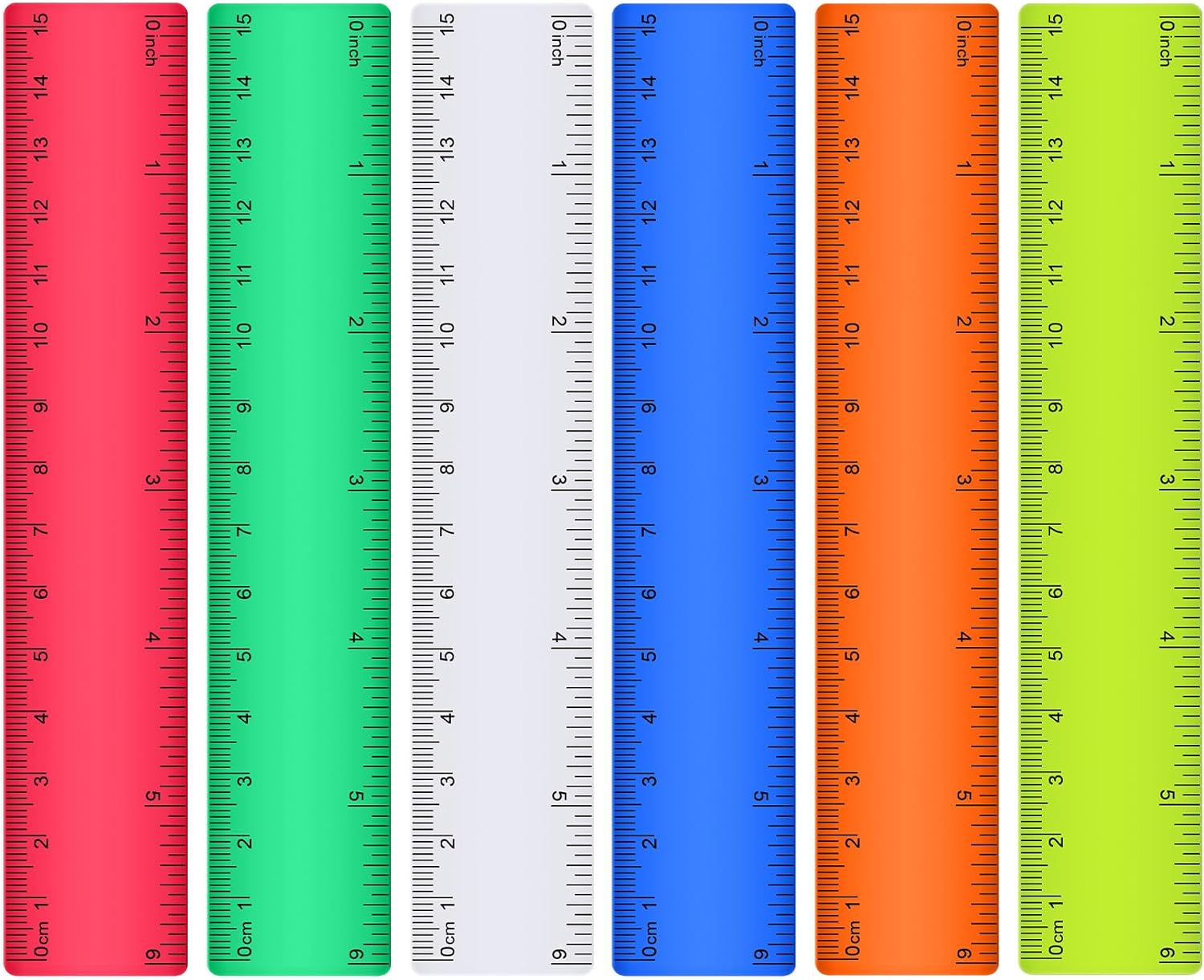 Zonon 6 Pcs 6 Inch Ruler Bulk Colorful Plastic Flexible Straight Metric Rulers with Centimeters and Inches Drafting Measuring Tool for Classroom School Students Education