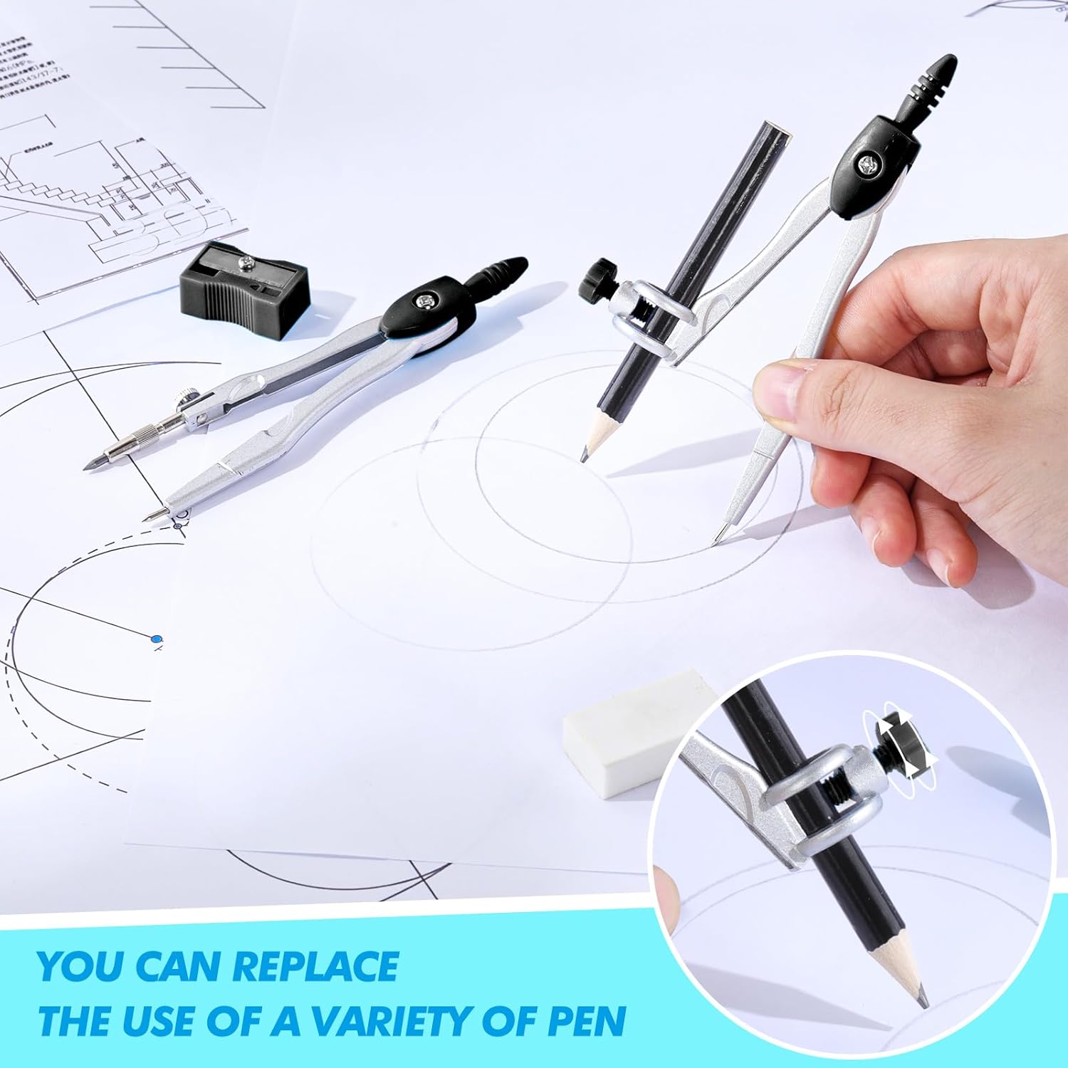 - Package Includes: the geometry set includes 2 compasses, 2 triangles, 1 ruler, 1 protractor and 1 pencil, 1 eraser, 1 sharpener, and 1 box of pencil lead refill, ensuring that you have all the tools you need for precise geometry calculations
