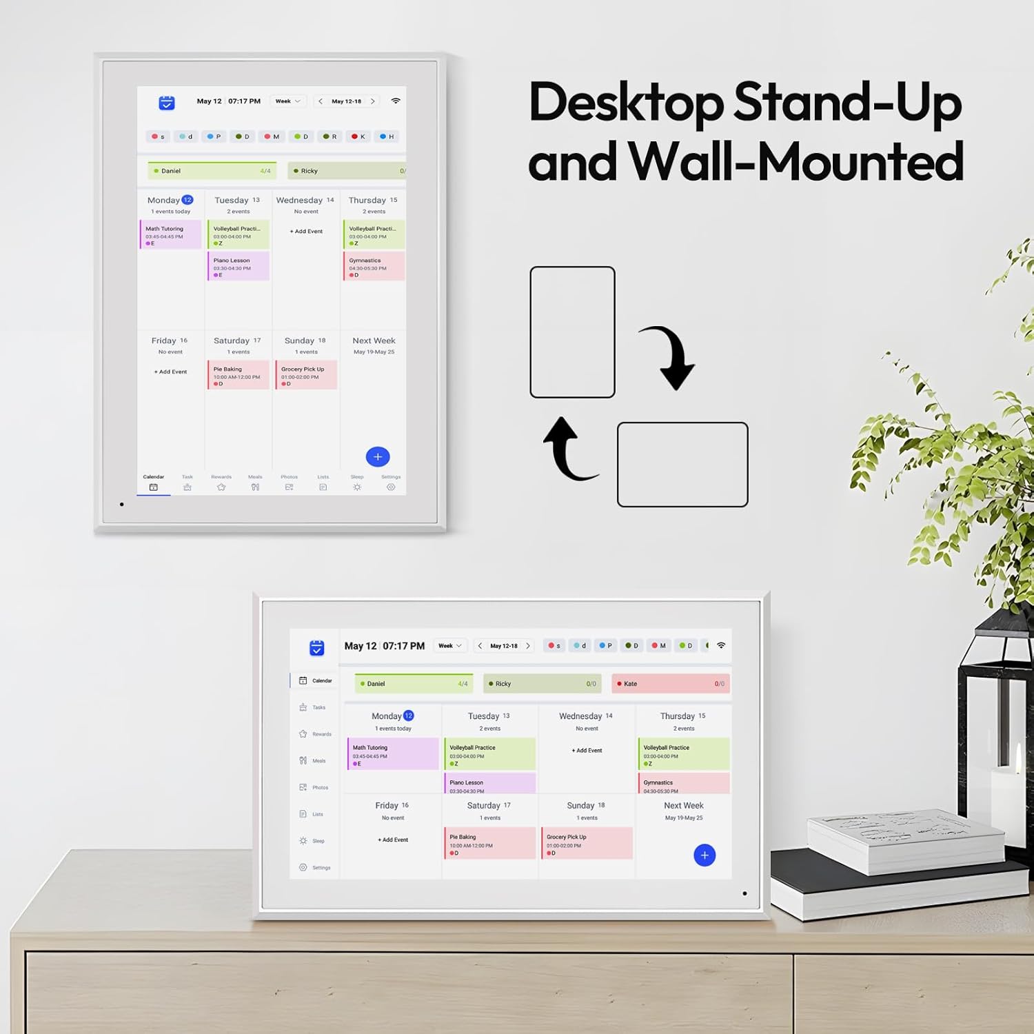 - [Charming Digital Picture Frame] When not in use, your smart calendar transforms into a beautiful digital picture frame. Showcase treasured family photos on the large screen, adding a touch of elegance to any room as modern home decor.