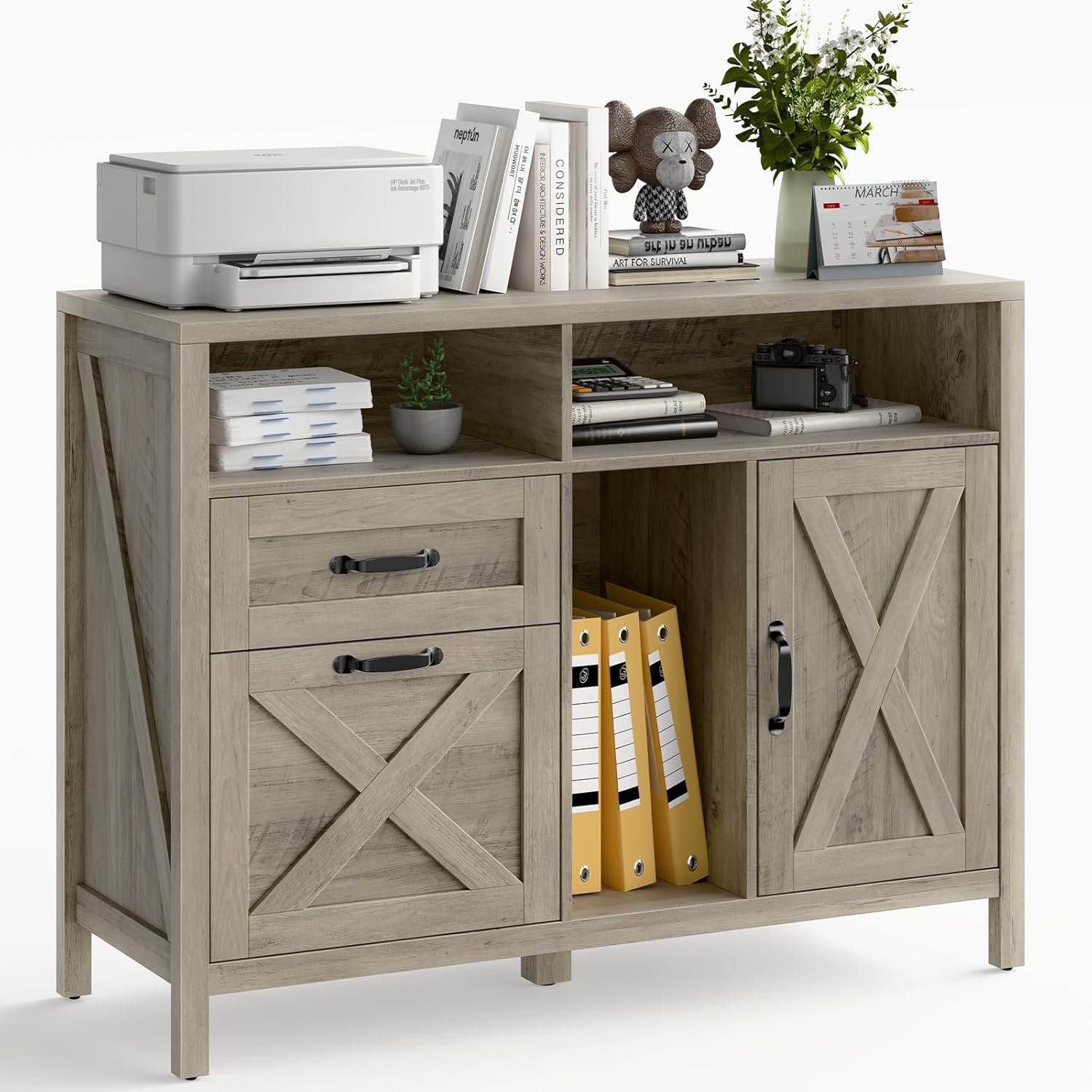 - 【Stylish Farmhouse Charm】The farmhouse file cabinet is uniquely charming. It has a minimalist yet distinctive design that adds a cozy atmosphere to the space. It is ideal for decorating your home