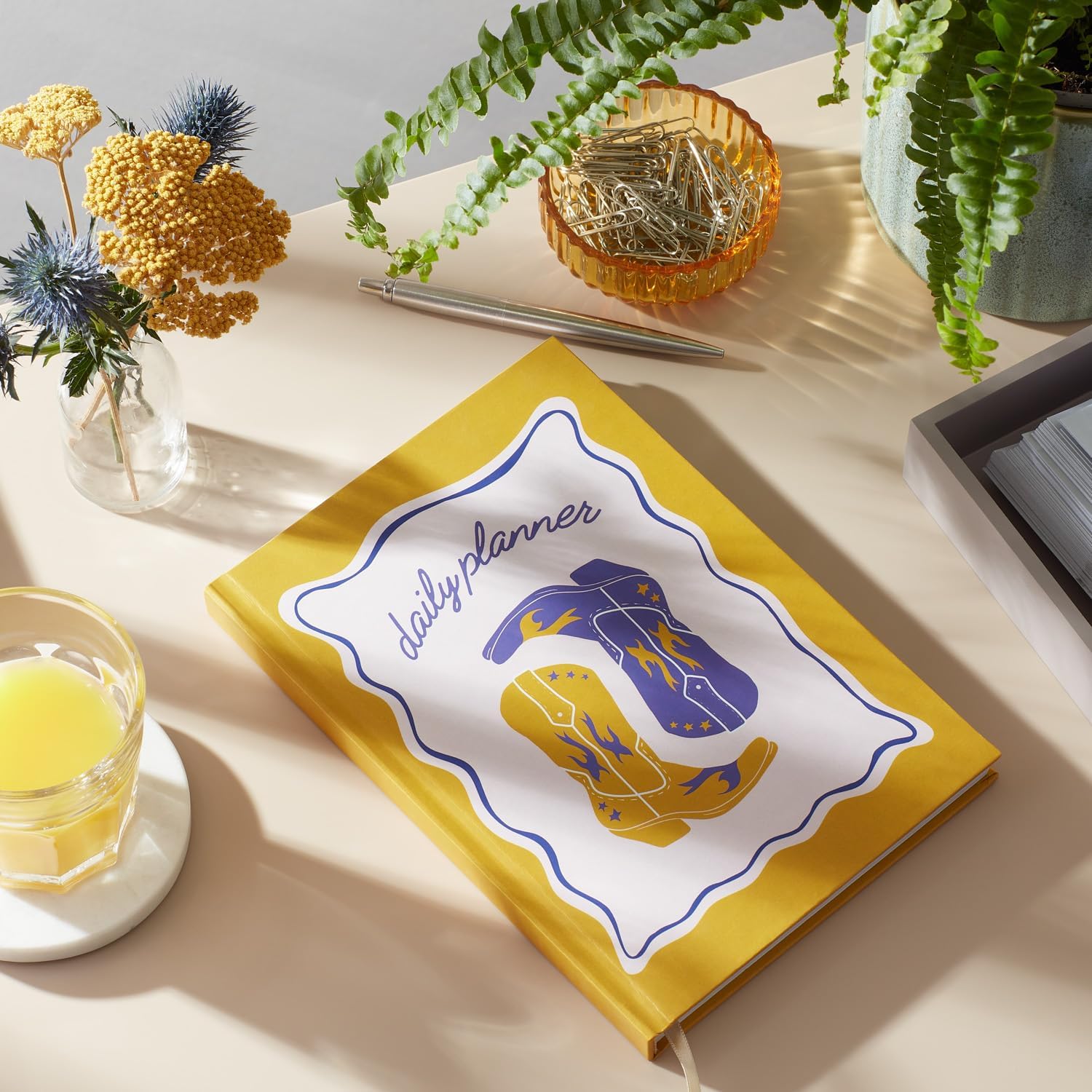 Yop & Tom Undated Daily Planner (A5) - Productivity Planner - Weekly and Daily Organizer with Time Slots - Cowboy Boots