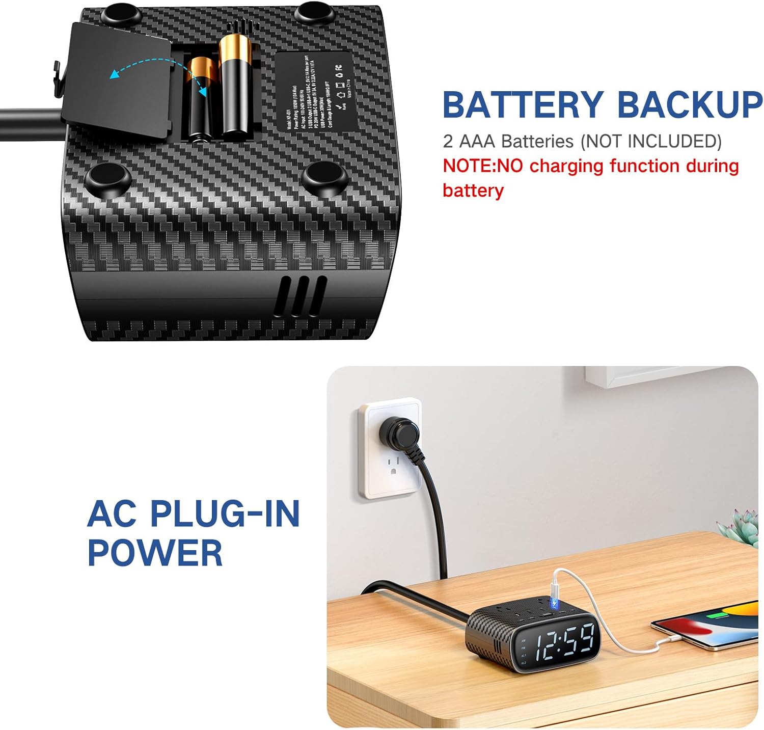 - ใ๐๐๐ ๐๐จ๐ฐ๐๐ซ ๐๐จ๐๐๐ฌ ใThis digital alarm clock offer 2 charging modes that is 3 AAA batteries and AC plug. It is not only a alarm clock but also a power strip with 6ft extension cords. When this home alarm clock charge with AC plug, 6 devices also can be charged at the same time. NOTE:NO charging function during battery backup mode.
