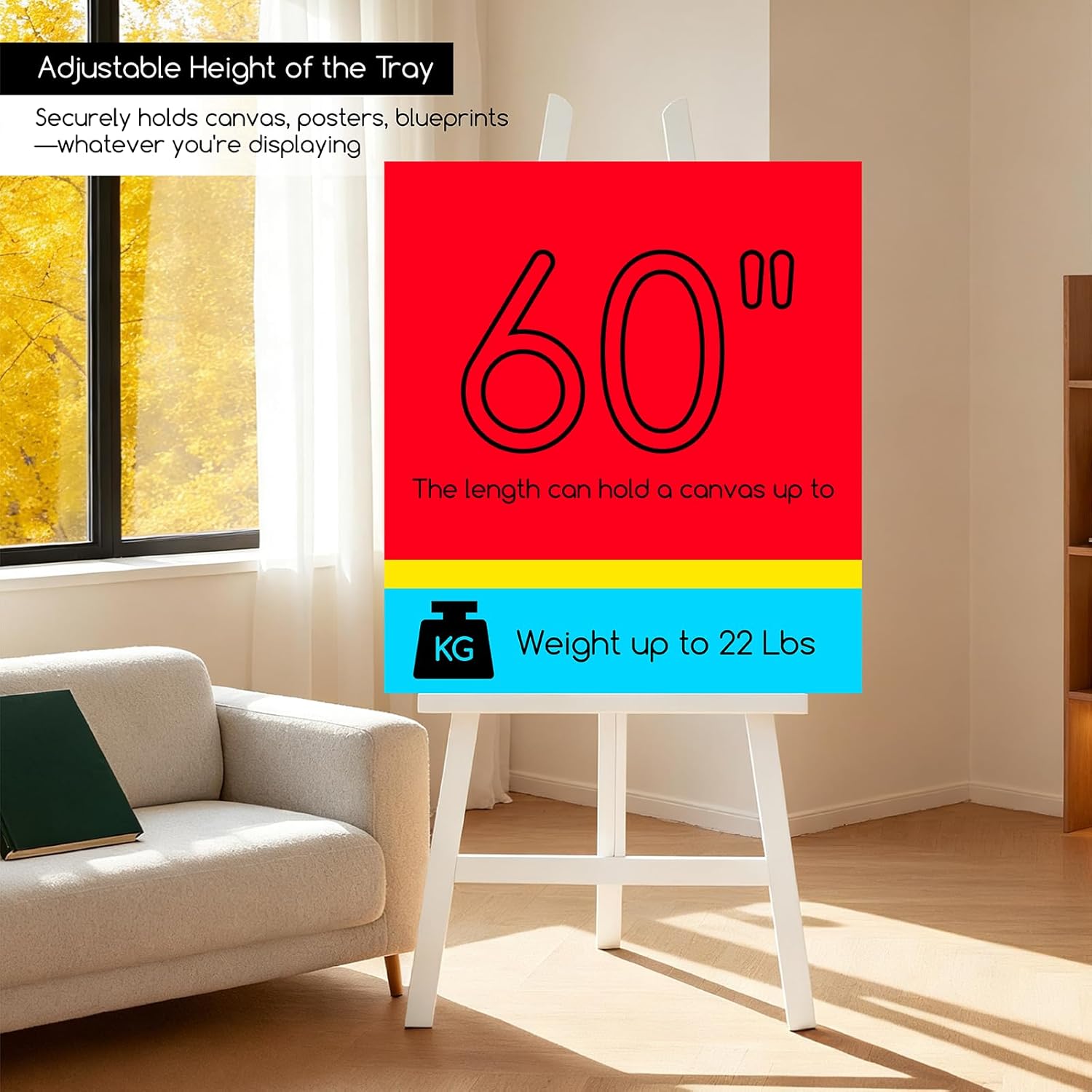 MEEDEN Art Easel Stand for Display: Adjustable Wooden Stands for Sign - A Frame Painting Easel for Canvas up to 60" for Artist Adults Drawing Picture Poster - White