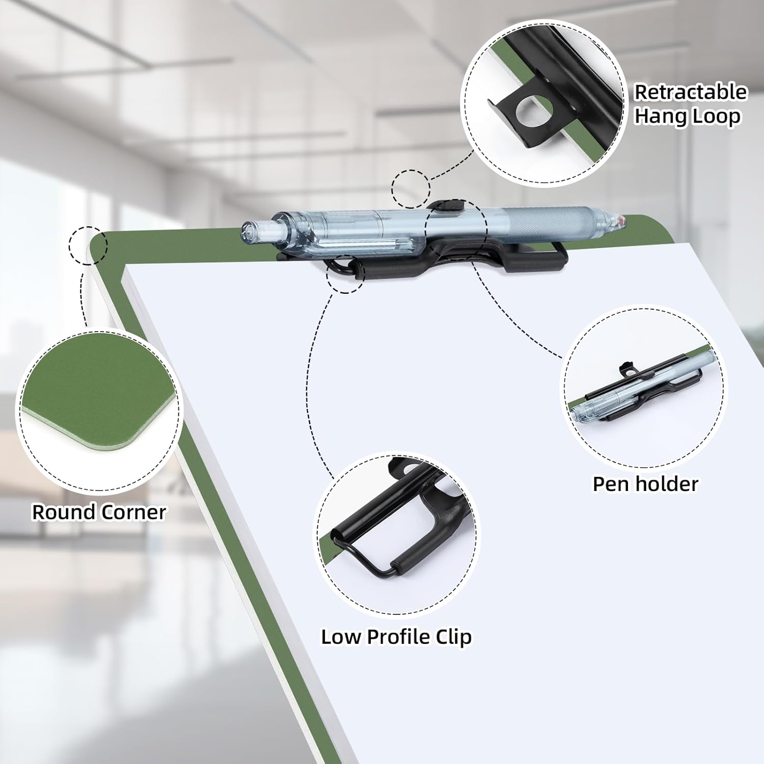 - Retractable Hanging Ring: The hanging clipboard has a retractable hanging ring on the top for easy access, you can hang it up to display the contents of your clipboard or hang it on the wall when not in use to save storage space. The low profile clip is ideal for stacked storage.