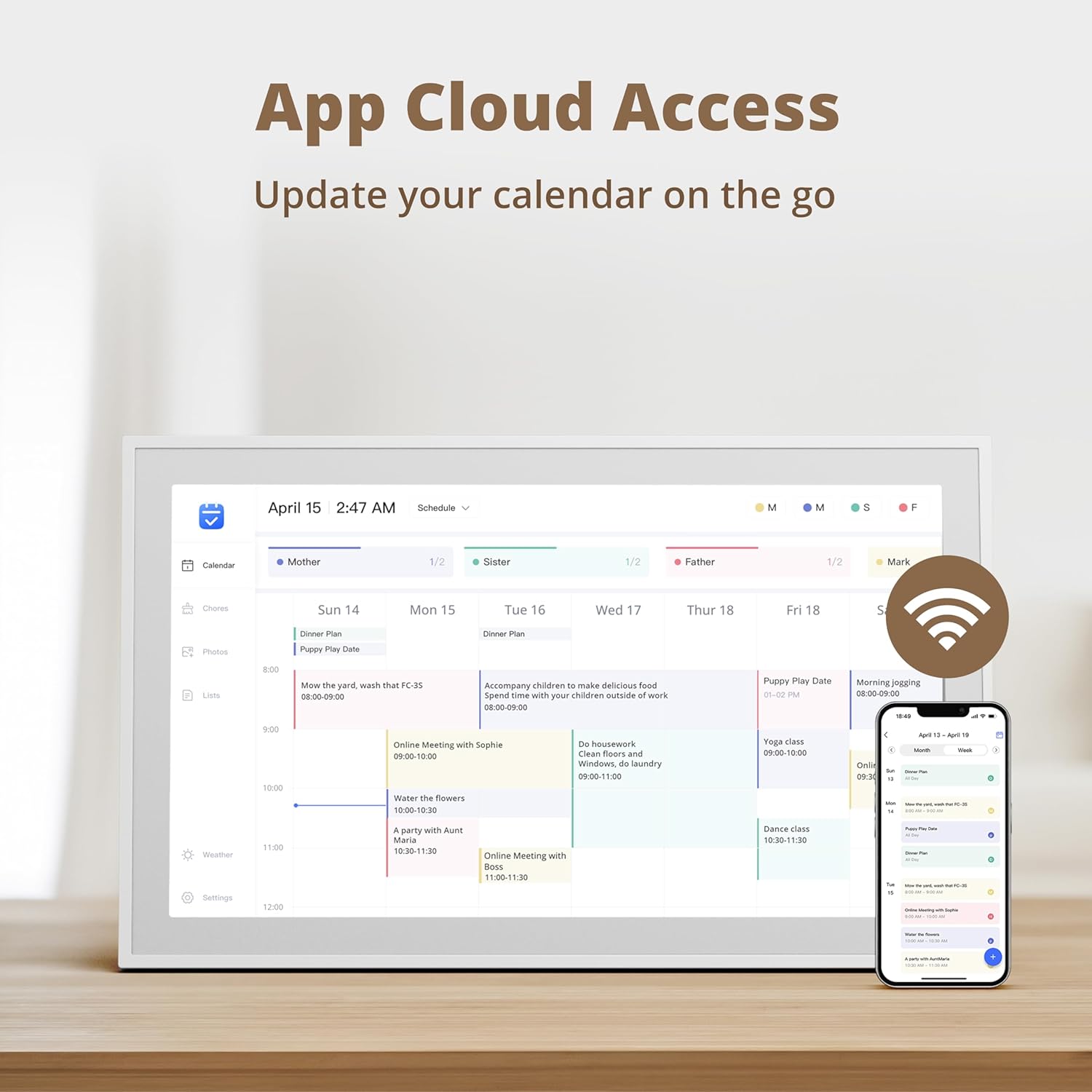 - 【Easy Setup and Auto-Sync】: Enjoy a user-friendly design that our smart picture frame allows for quick setup—just plug in, connect to Wi-Fi, and link your calendar to the Mobile App. Once synced, it seamlessly integrates multiple personal calendars (iOS, Google, etc.) into one unified interface. Authorize additional devices for even greater convenience.