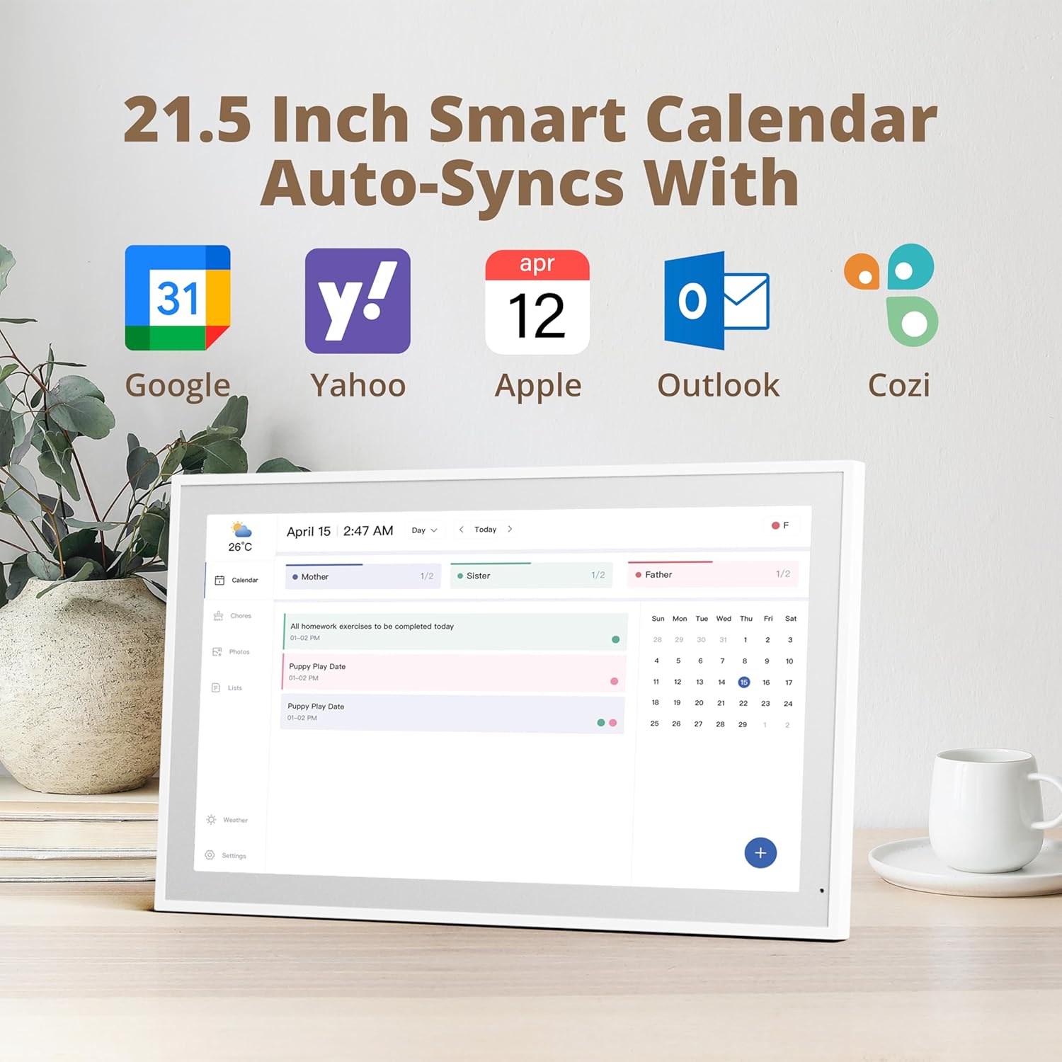 - 【Charming Digital Picture Frame】: When not in use, your smart calendar transforms into a beautiful digital picture frame. Showcase treasured family photos on the crystal-clear 21.5" large touchscreen, adding a touch of elegance to any room as modern home decor.