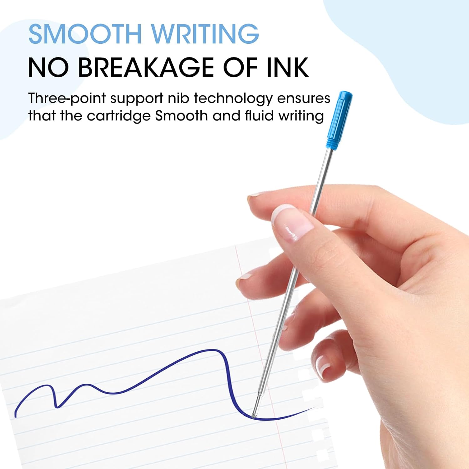 • Universal Cross Compatibility: These 4.6-inch metal refills are precisely designed to fit most Cross ballpoint pens seamlessly. The secure twist-in mechanism ensures a tight fit with no wobbling or ink leakage, allowing you to continue using your favorite pen with fresh ink