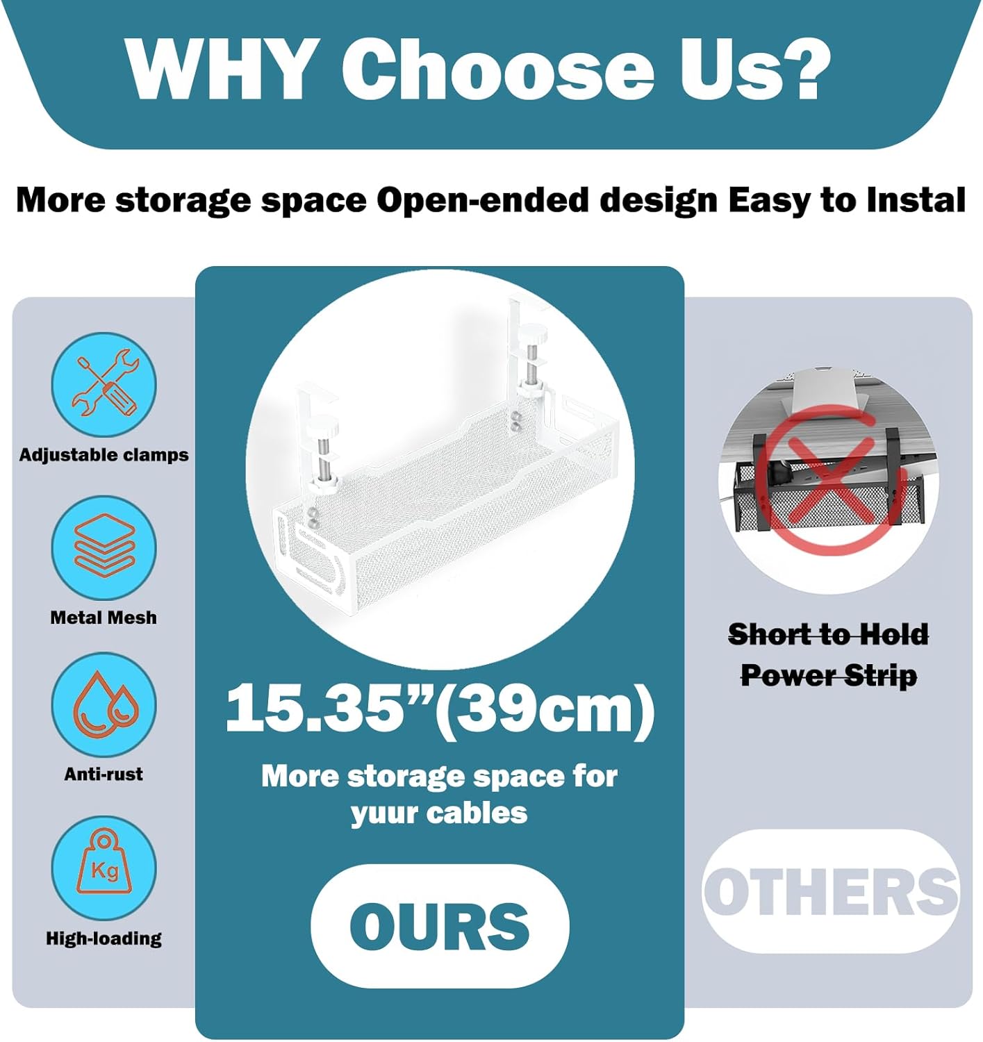 - 【Effective Safety Protection】The under desk cable management tray keeps plugs away from children and pets, alleviating concerns about tripping hazards. Utilizing the cable management under desk saves valuable space and makes it easy to manage cables and protect cords. Say goodbye to cluttered or tangled cords and cables. Achieve organized under desk cable management.