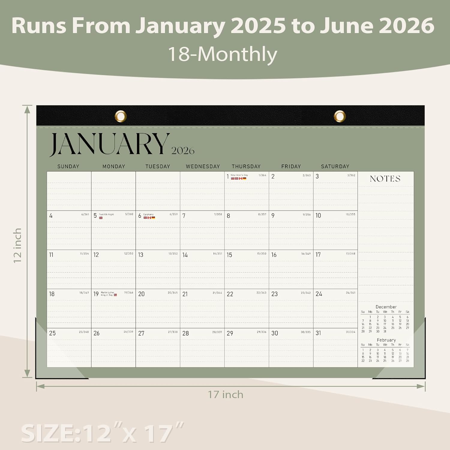 2026 Desk Calendar, Large Desktop/Wall Monthly Calendar (Jan. 2026 - Jun. 2027) 17'' x 12'' School Year Desk Planner for Teacher Family School Office Supplies