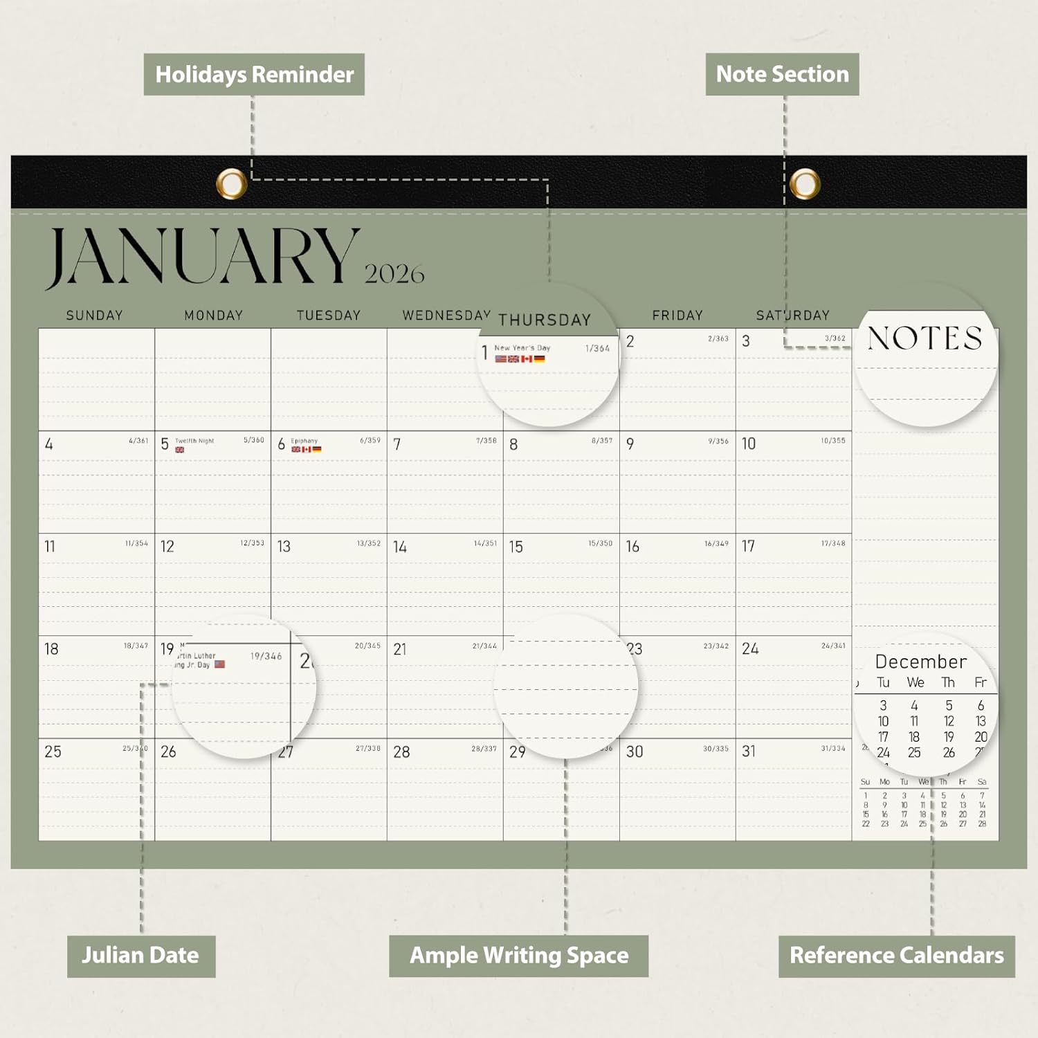 • [FUNCTIONAL & CUSTOMIZABLE] – This large 2026 calendar (17"x12") features 18 monthly calendar pages. Each page includes ruled daily blocks, a notes section, and a full-year overview. It also comes with 3 calendar sticker sheets for easy customization and organization.