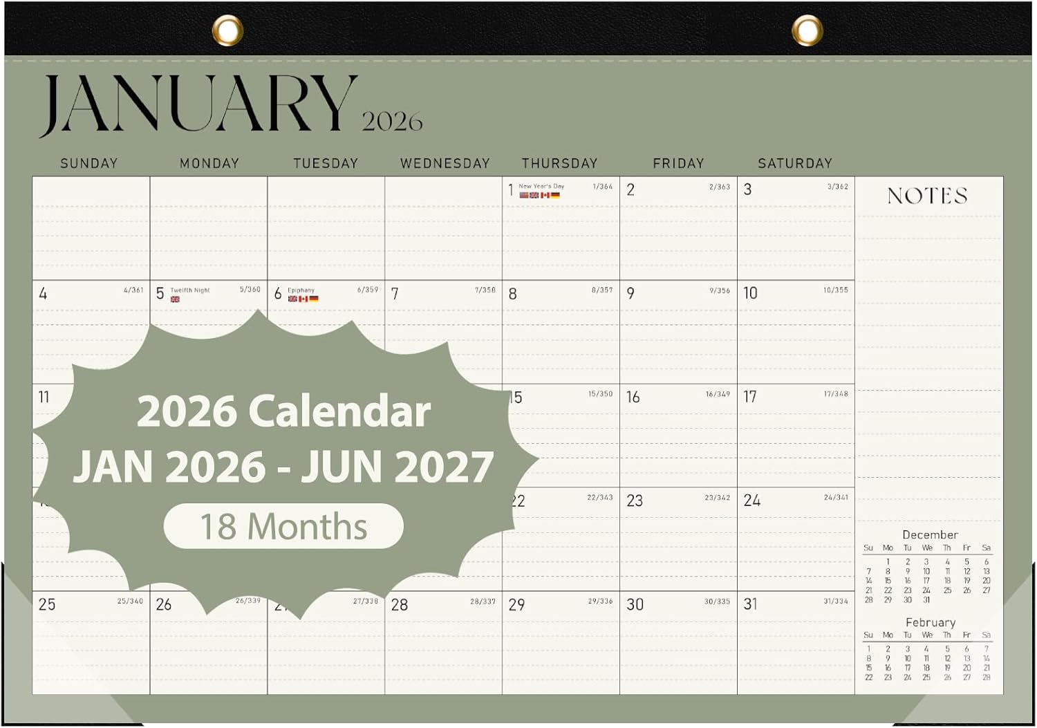 • [18-MONTH PLANNING COVERAGE] – This desk calendar 2026-2027 spans from January 2026 to June 2027, offering extended planning with clear markings of holidays and Julian dates. Each month includes two reference calendars for quick looks at previous and future dates.