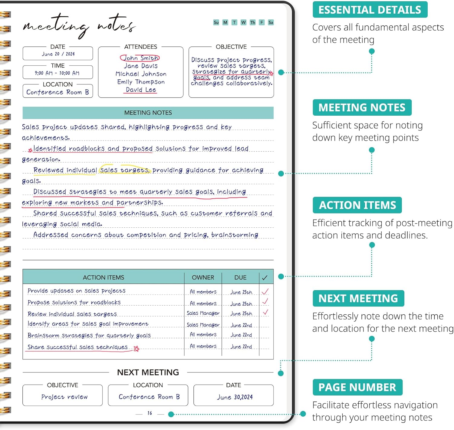 • Your Versatile Meeting Partner: Whether you’re an executive, project manager, team leader, or student, this daily work notebook adapts to your needs. It’s more than just a planner—it’s a powerful organizational tool designed to support productivity in meetings, planning, brainstorming, and beyond.