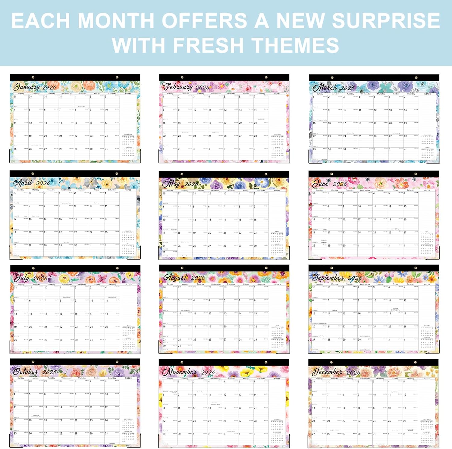 Lbylyhxc Desk Calendar 2026-2027, 18-Month School Year Calendar 2026-2027, January 2026 to June 2027, Large Desktop Calendar Monthly for Teacher with Corner Protectors 17" X 12" (Watercolor Flowers Desk Calendar, 17x12 inches)