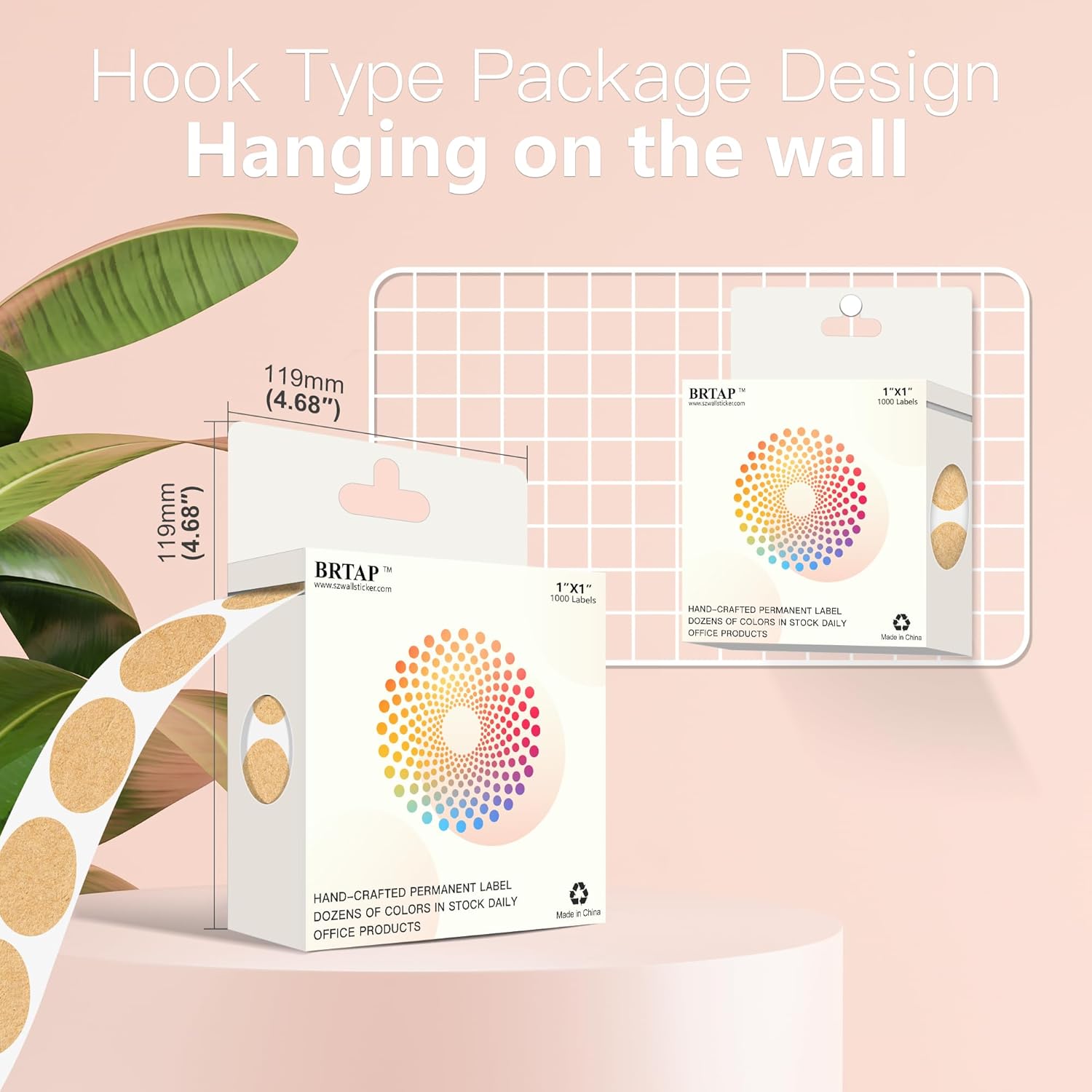 1 Inch Round Color Coding Labels, 1000 Dots Per Roll Kraft Brown Color Coded Dot Stickers, Round Color Dot Labels for Organizing, Filing, and Storage